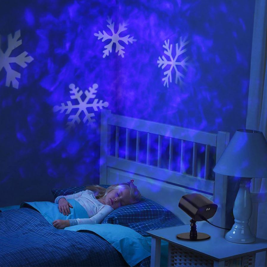 2 in 1 water wave light and projector light can simulate the movement of the pattern in water, Ocean waves projection lamp projects different pattern, cycles between red, blue, green and multicolor.