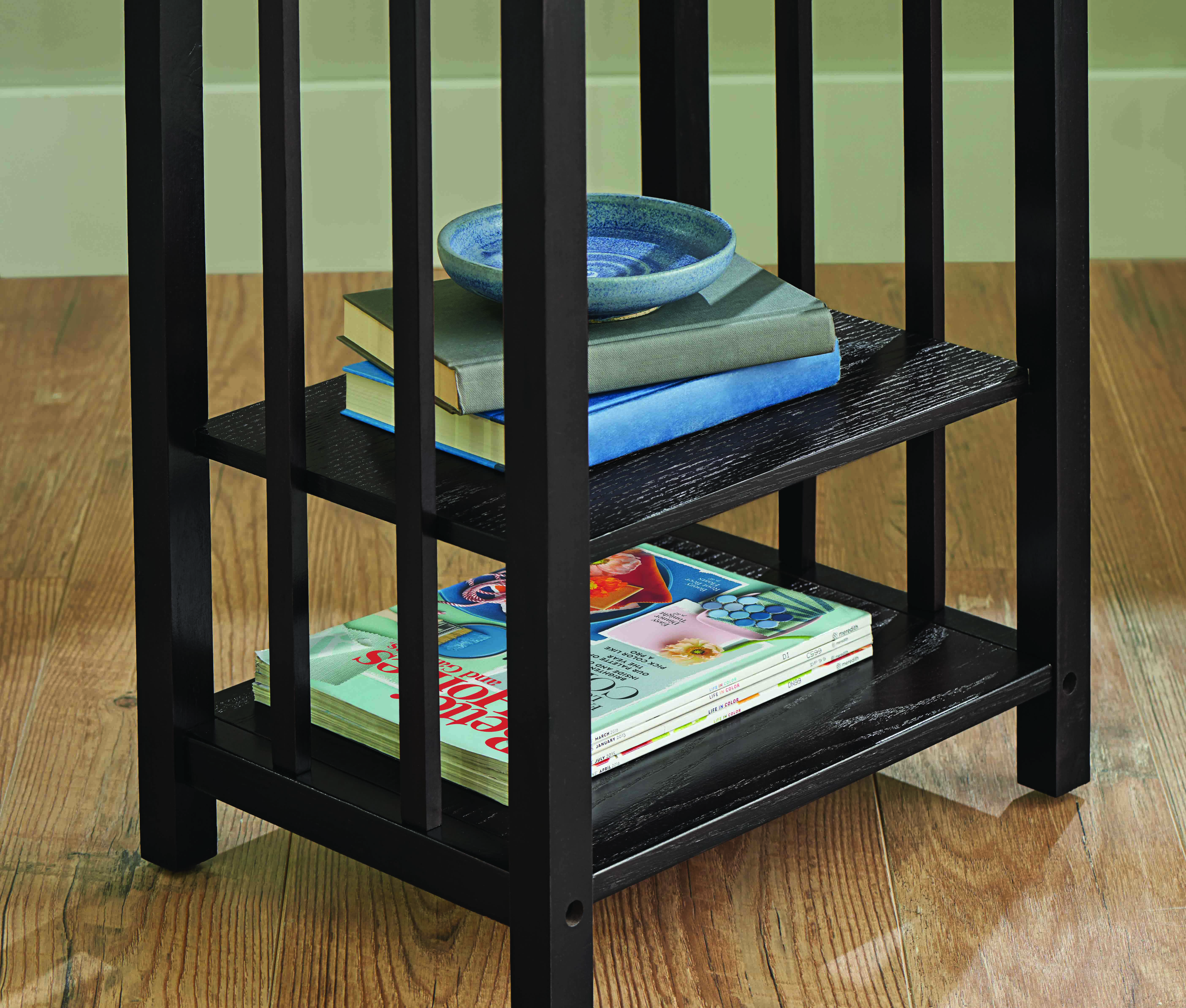 The Better Homes & Gardens 3-Rack End Table Floor Lamp is a great way to add functionality and value to a small area of your office or living space. This item features a swing-arm lamp to optimize visibility and light distribution wherever you are in the room and the two enclosed shelves offer a great solution for storage and organization. With a rich, espresso finish and a neutral lamp shade, this piece is sure to blend well with a wide variety of home-decor styles. Get style and versatility with the Better Homes & Gardens 3-Rack End Table Floor Lamp.