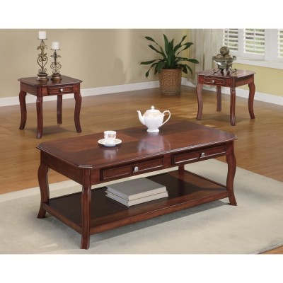 3PC OCCASIONAL TABLE SET;LIGHT BOURBON Finished in a warm light bourbon, this 3 piece table group features a parquet wood inlaid top and framed storage drawers.