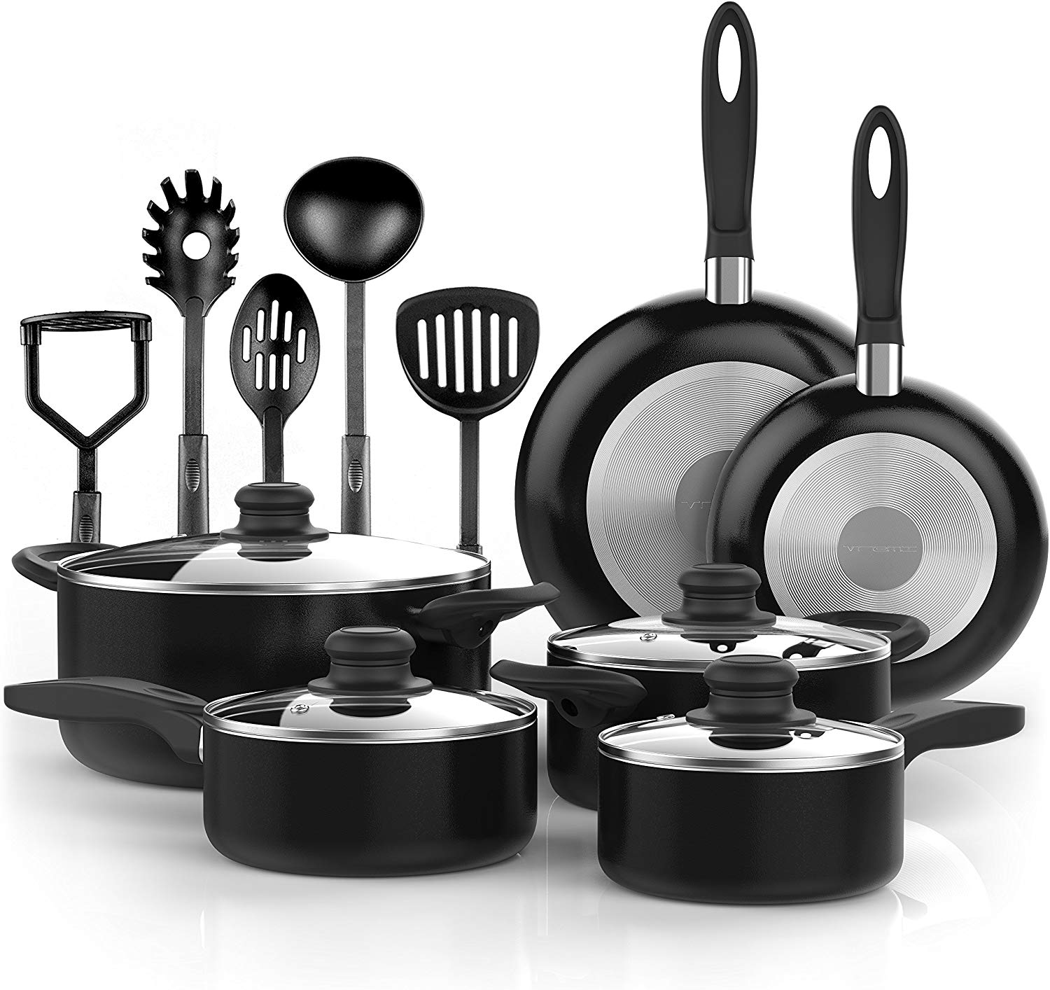 ONE NONSTICK COOKWARE - 15 pcs pots and pans set includes 4 pots with 4