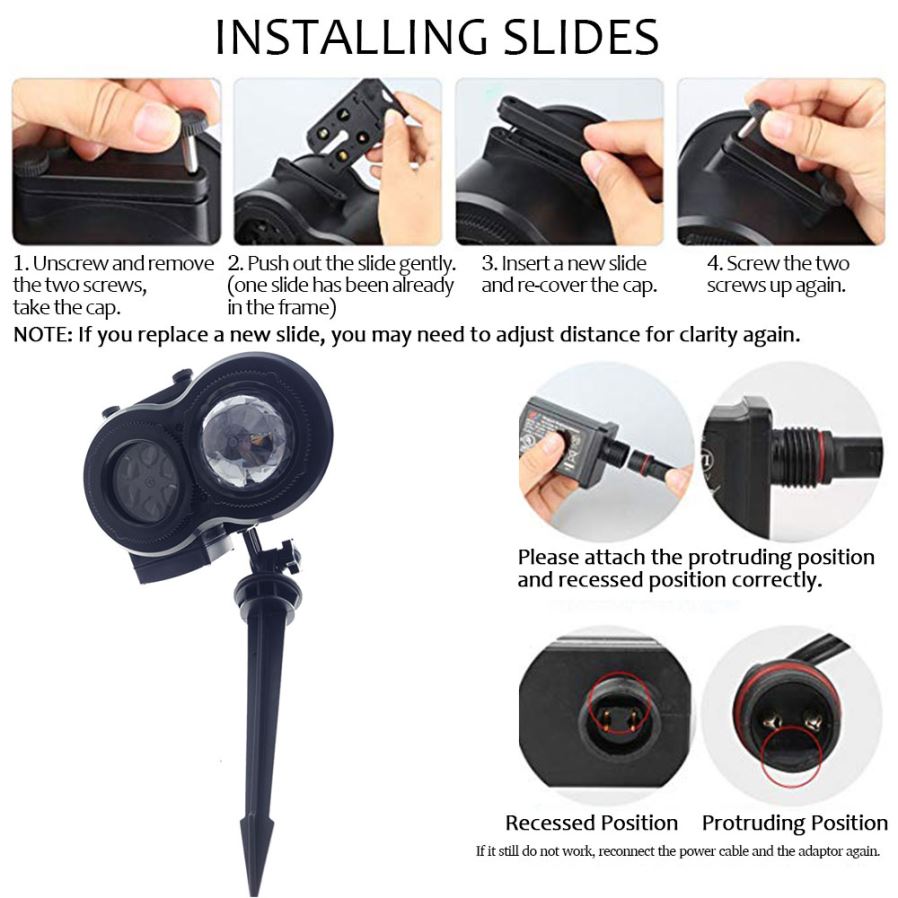 【100% High Quality Gurantee】This LED Projector Light is made of ABS and the best cap design. No fear of rain,snow and strong sunlight.Secure without radiation and eye friendly. LED light is best for baby. Also,energe saving with low power consumption.