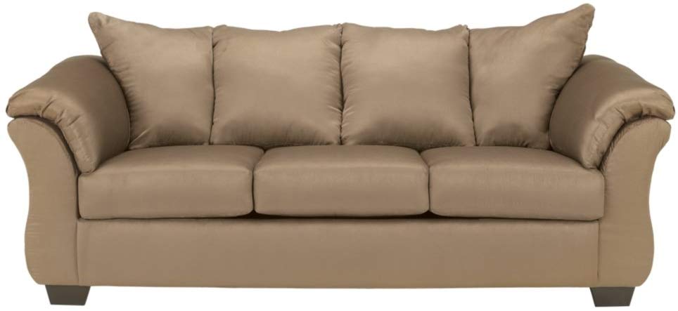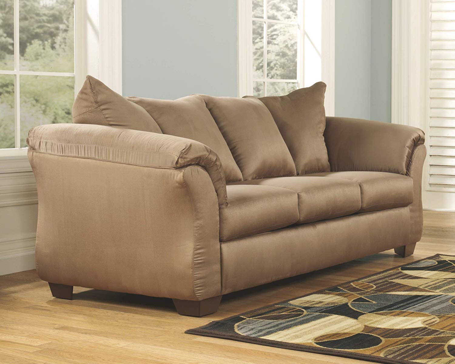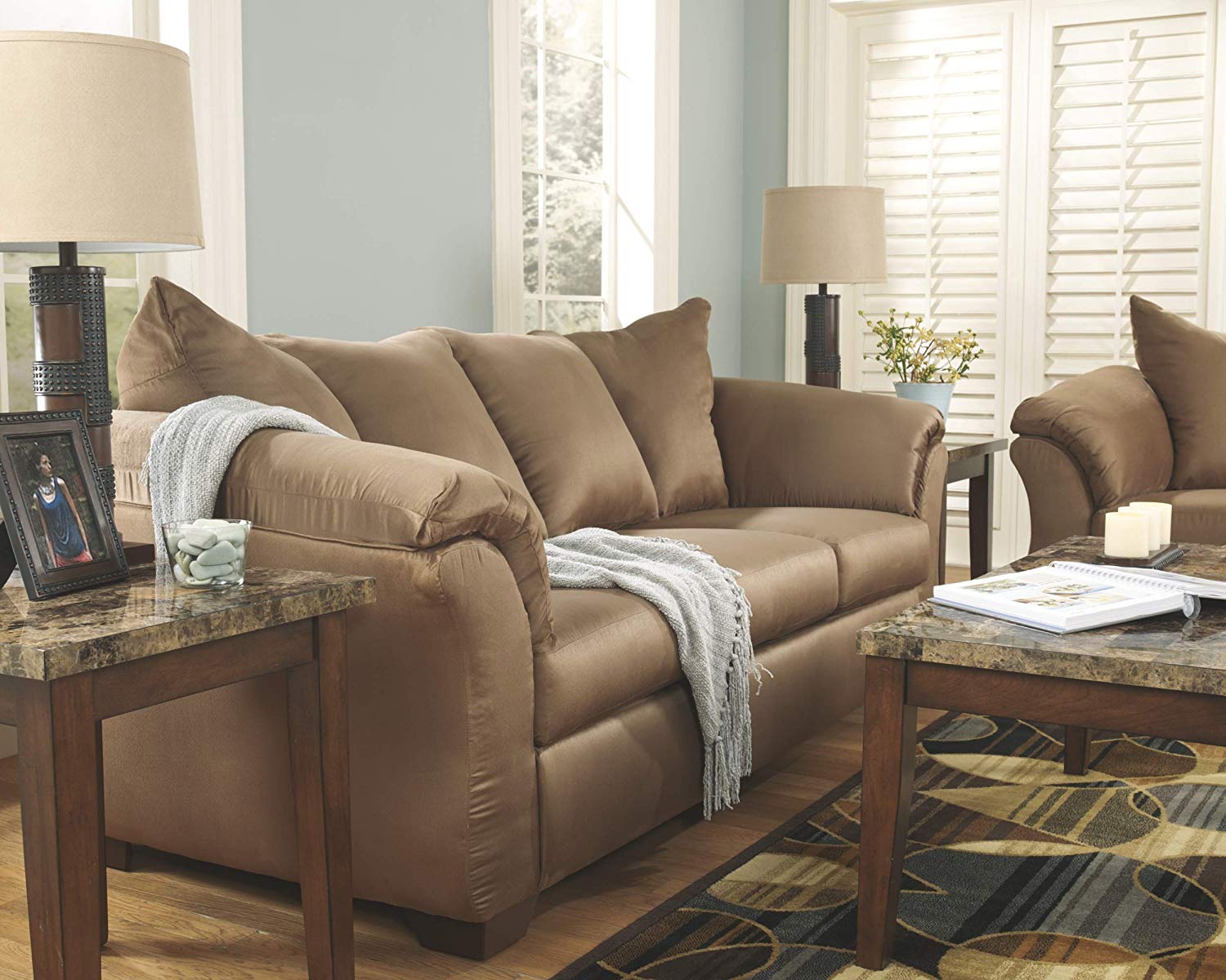 STYLE: Dressed in an easy-to-match, light mocha brown, styling this couch