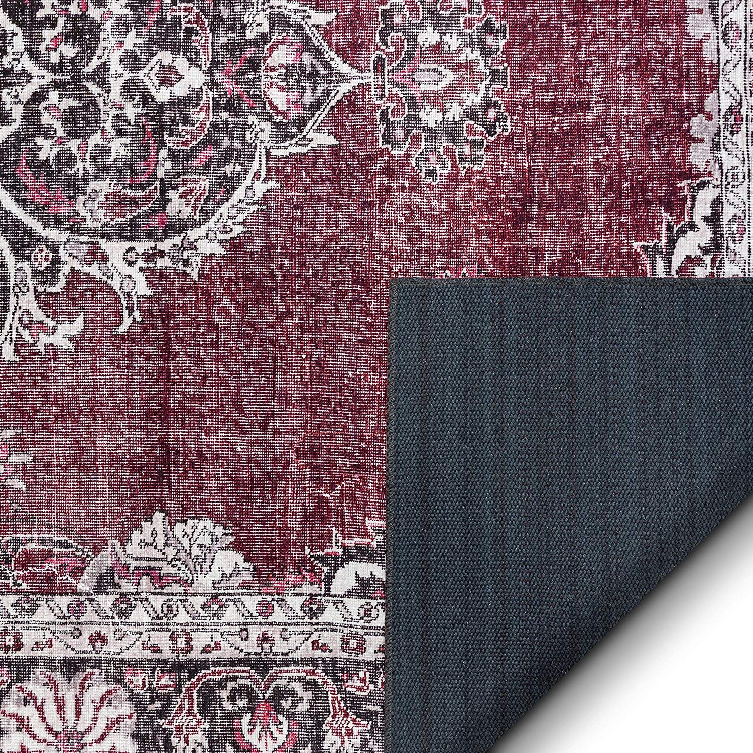 Kid and pet safe stain and fade resistant material. Wood-floor-safe backing.