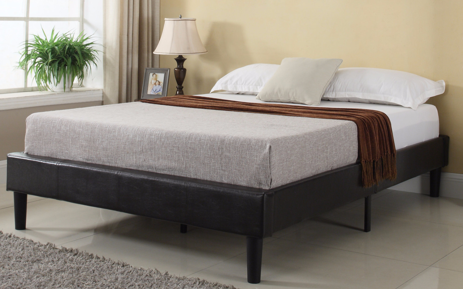 in dark espresso color. Wooden slats included with extra legs for full support