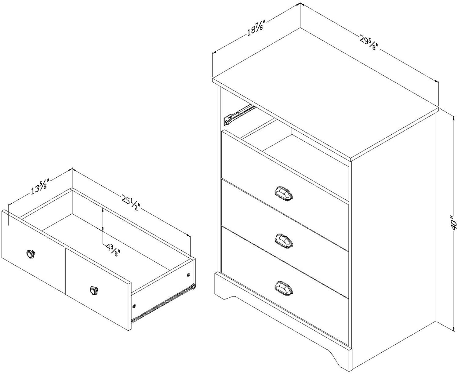 The drawers can hold up to 25 lbs. – no problem. 5-year limited south Shore is