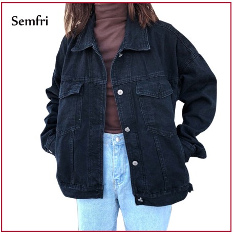 Semfri Jacket Women Black Denim Jacket Winter Jeans Coat Casual Harajuku Streetwear Female Vintage Jeans Coat