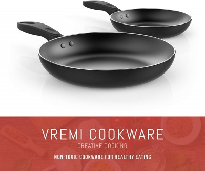 glass lids and 2 sauce / frying pans. Made from durable, non toxic food